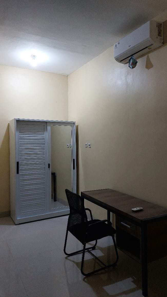 Kamar rapi dengan perabot lengkap (kasur, meja, kursi, lemari) serta sirkulasi udara baik. Cocok untuk pelajar & mahasiswa.